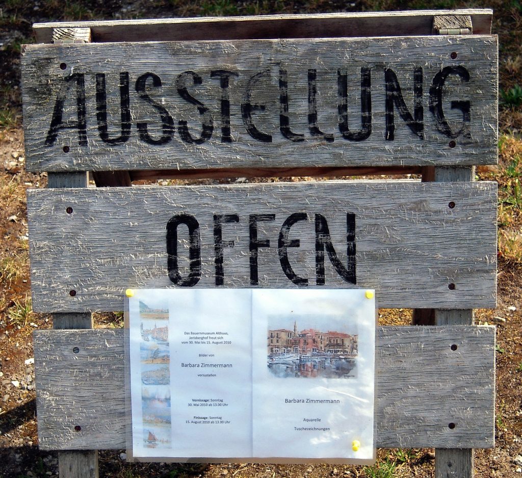 Dieses Blog begann ja als Kommunikationsmedium für die eigene Familie. Zu dieser gehört auch die Schweizer Hobbymalerin Barbara Zimmermann, geborene Teuthorn. Sie stellte [2010] im Dorfverein Ins Aquarelle und Tuschezeichnungen aus.