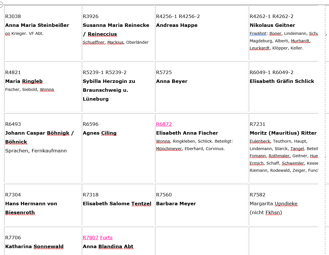 Seit Roths verdienstvoller Arbeit ist die Erschließung der Leichenpredigten nicht nur nicht stehen geblieben sondern bietet umfangreichere Erschließungen als sie vor 30 Jahren möglich waren. Dafür steht an erster stelle die Forschungsstelle für Personalschriften mit ihrem Katalog und verschiedenen Erschließungsansätzen. An das folgende Roth-Beispiel zu Anna Fischer schließt sich weiter unten zu ihr und Frankenhausen jeweils ein Beispiel heutiger Auswertungsmöglichkeit an.