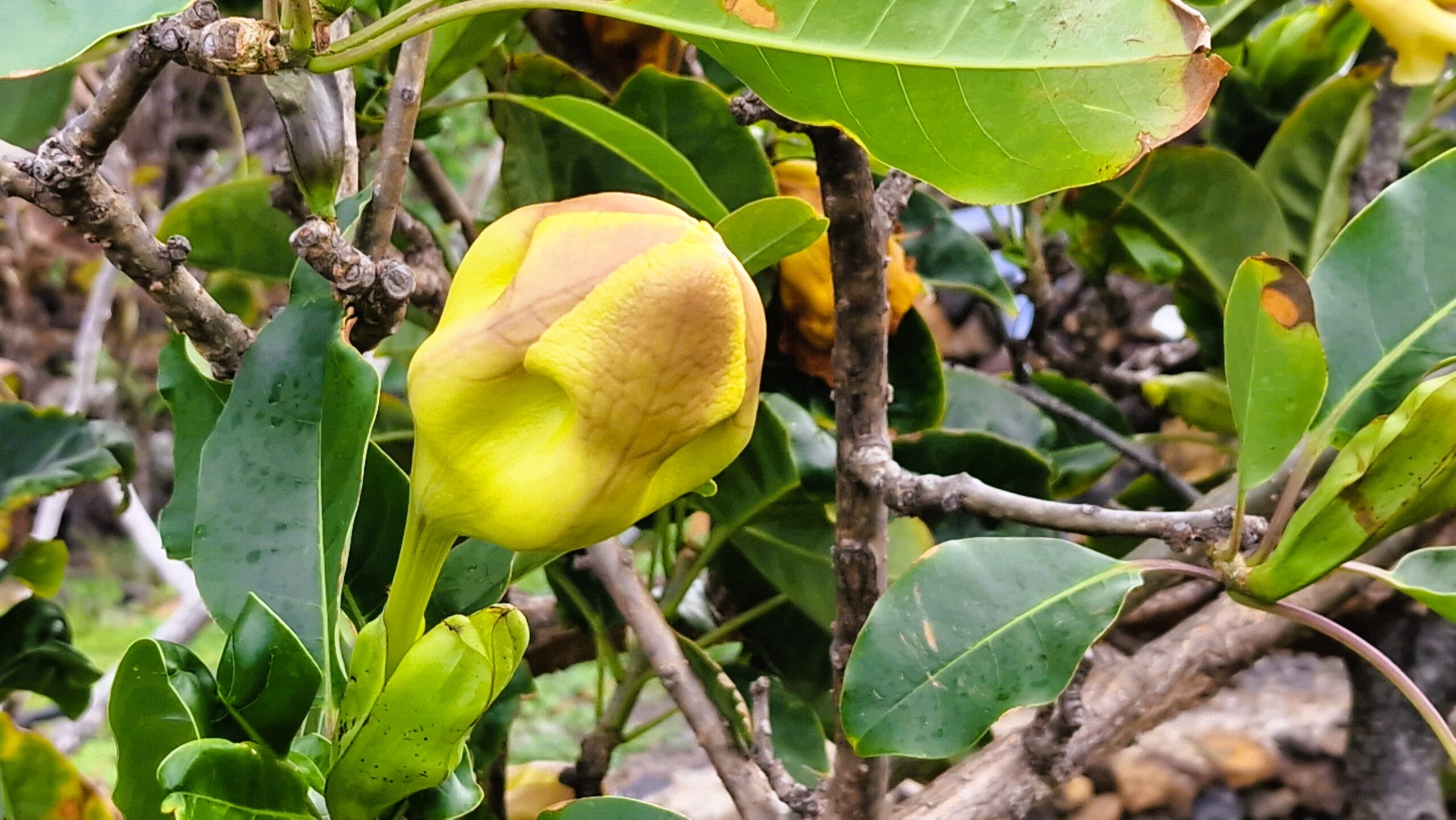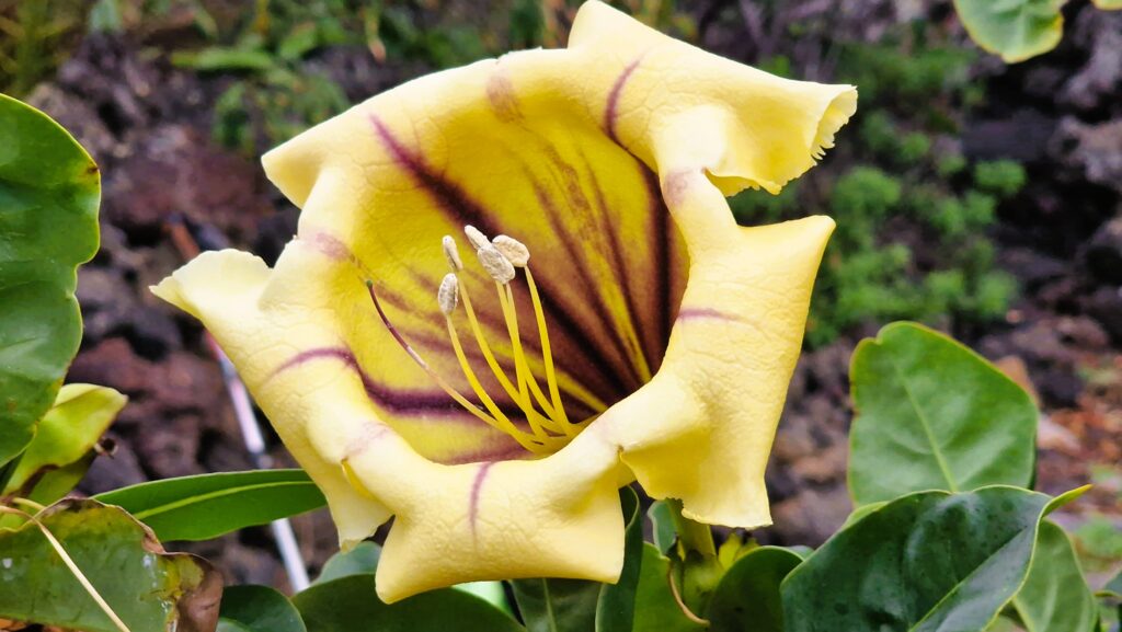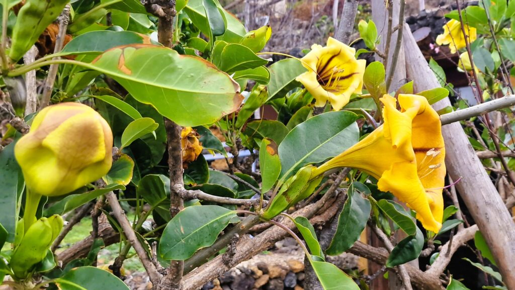 Die Solandra grandiflora (Goldkelch, Kelchrebe) ist eine beeindruckende, trompetenblütige Kletterpflanze aus der Familie der Nachtschattengewächse (Solanaceae), die ursprünglich aus Mittel- und Südamerika stammt, aber auch auf den Kanaren als Zierpflanze in Gärten kultiviert wird und dort verwildern kann. Sie ist bekannt für ihre großen, gelben, duftenden Blüten und ist eine beliebte, aber giftige Pflanze, deren Teile beim Verzehr schädlich sind.